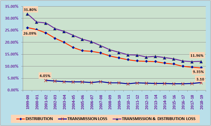 System loss is one of the key performance indicators. Continuous monitoring of the performance of the utilities reforms & target-oriented measures are underway by power cell to reduce the system loss. The system loss (distribution) has come down to 9.35% in Fy 2018-19 from 23.92% in FY 2001-2002.